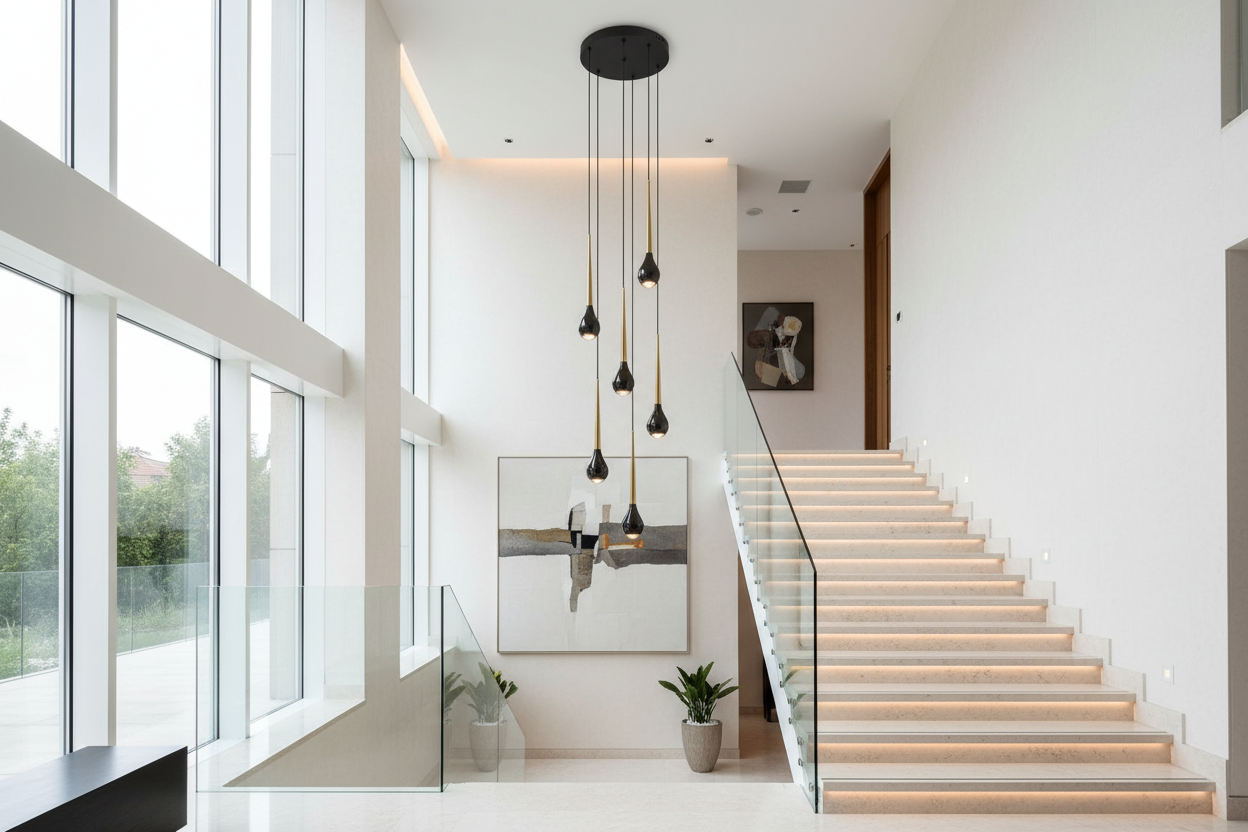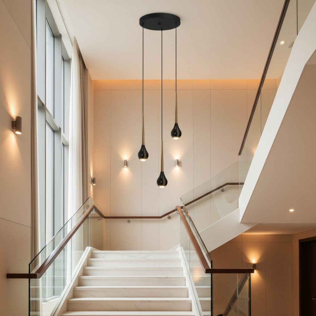Une suspension pour escalier, la cascade lumineuse pour votre intérieur